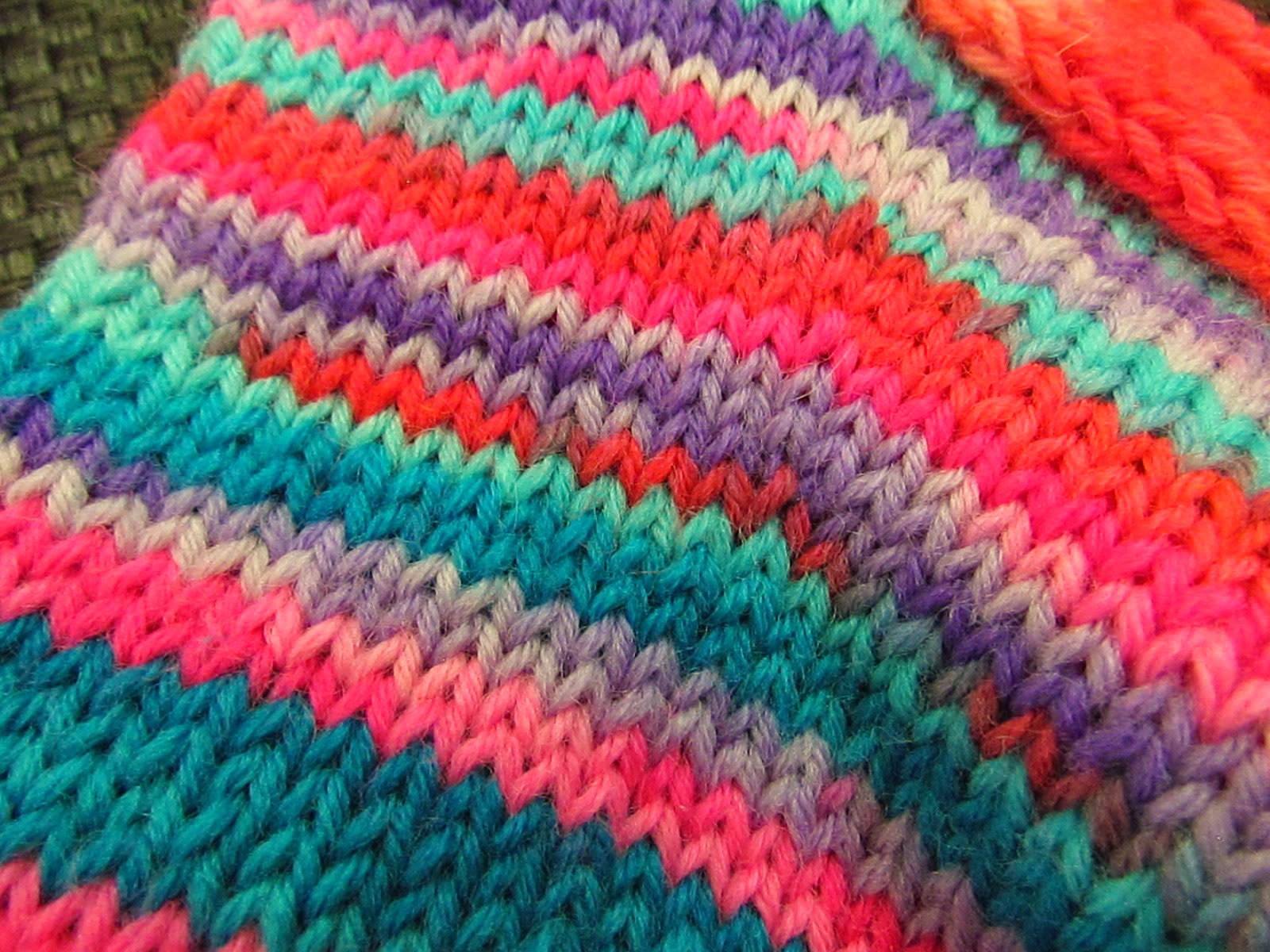Kaksi Regian Fluormaniakerän jämää huutelivat lankakaapista, halusivat kuulemma raitasukiksi. Ei kai se auttanut muu kuin totella.